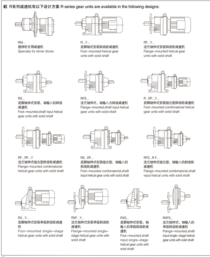 R系列斜齒輪減速機(jī)結(jié)構(gòu)形式: